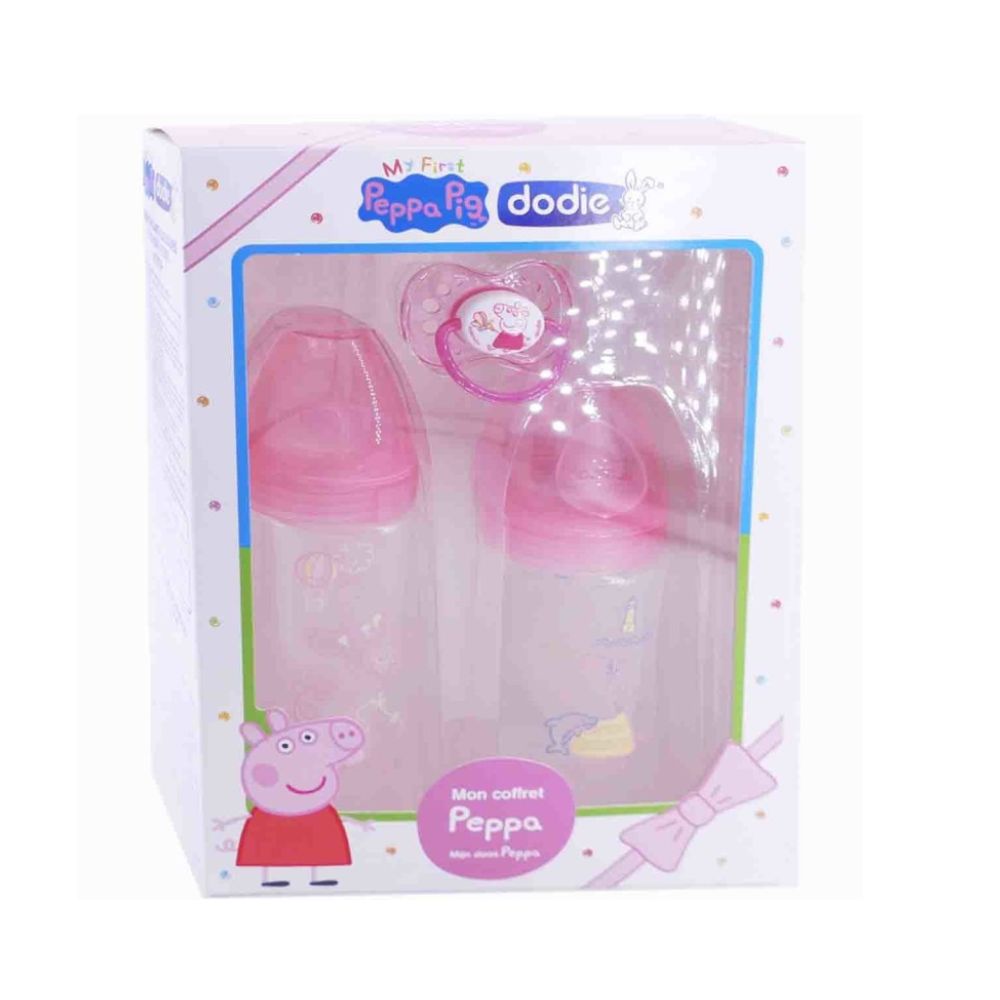 Le Coffret DODIE Peppa Pig accompagne bébé au quotidien avec deux biberons pratiques et ludiques, adaptés à l’évolution de son appétit. Grâce à leurs tétines rondes à débit variable, ils assurent une tétée fluide et confortable, sans effort pour bébé.