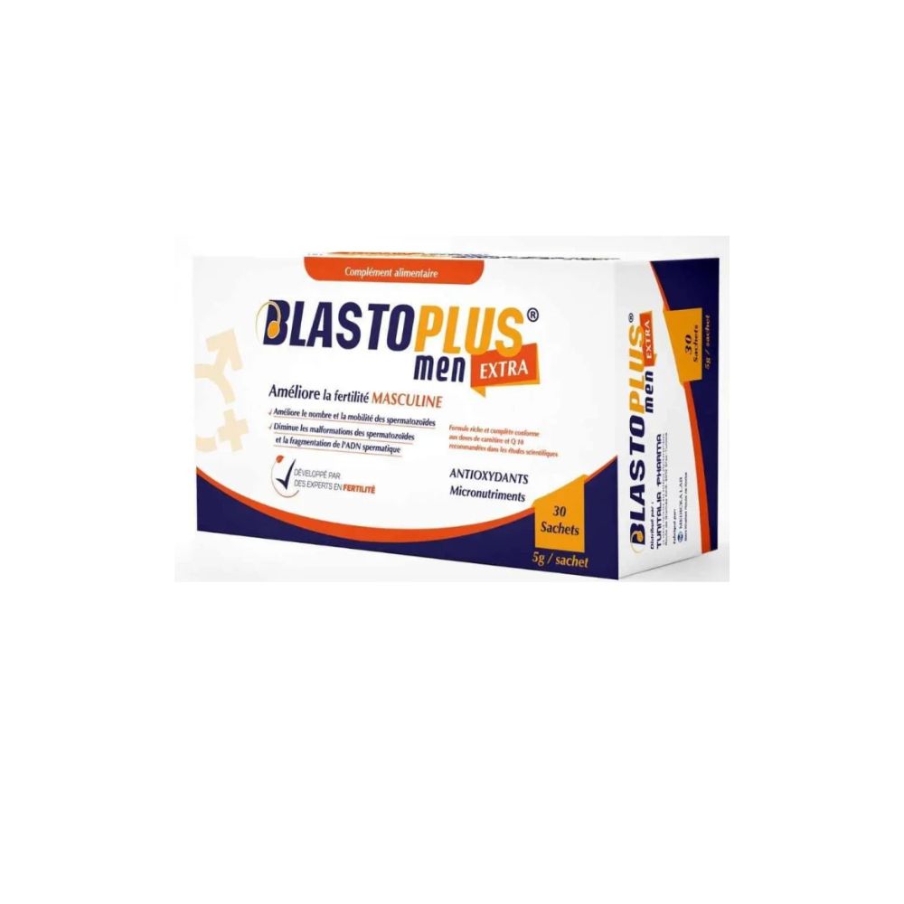 BLASTOPlus Men Extra est un complément alimentaire spécialement formulé pour soutenir la fertilité masculine. Sa composition contribue à améliorer la qualité du sperme en favorisant la mobilité et le nombre des spermatozoïdes, tout en réduisant les malformations et la fragmentation de l’ADN spermatique.