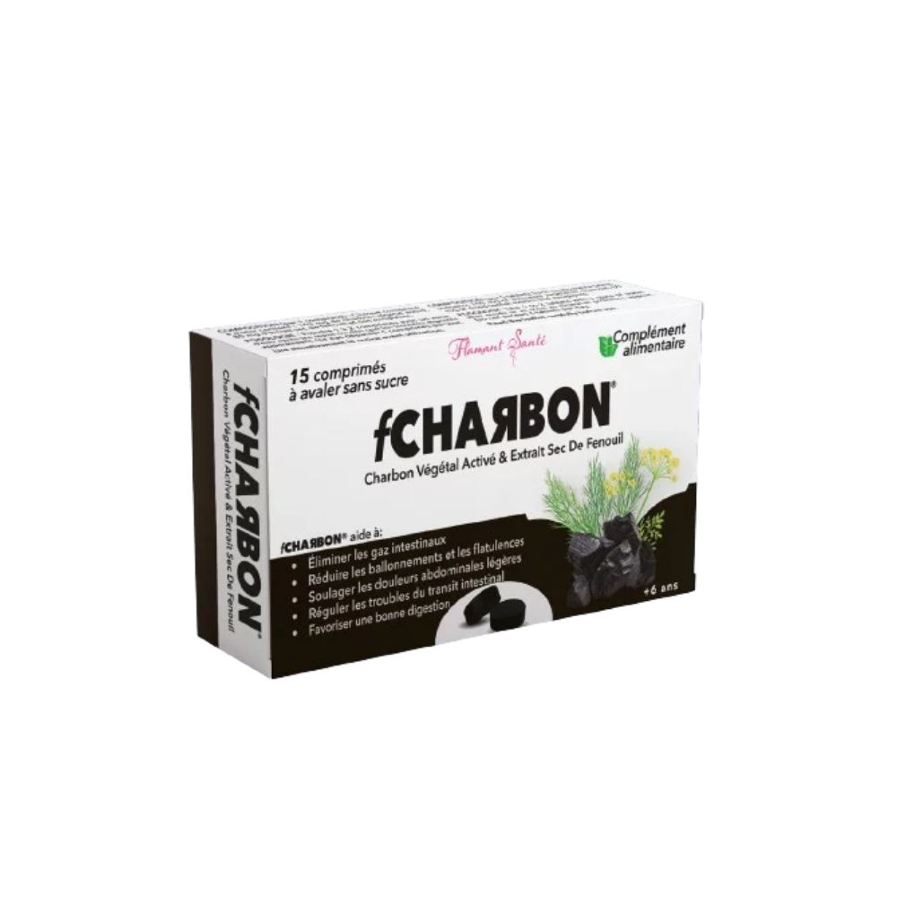 fCHARBON est un complément alimentaire sous forme de comprimés à avaler, formulé à base de charbon végétal activé et d’extrait sec de fenouil. Il aide à améliorer la digestion, réduire les gaz intestinaux et soulager les inconforts abdominaux légers.