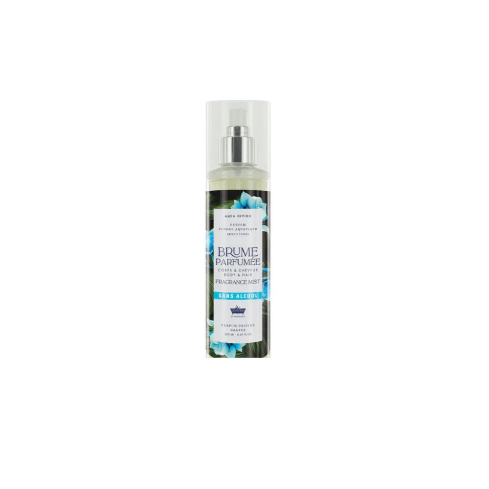 La Brume Parfumée “Aqua Divine” de Les Petits Bains de Provence est une brume corps et cheveux sans alcool de 250 ml, élaborée avec les parfumeurs de Grasse. Elle allie des notes aquatiques rafraîchissantes à des essences florales délicates pour un parfum léger et élégant.