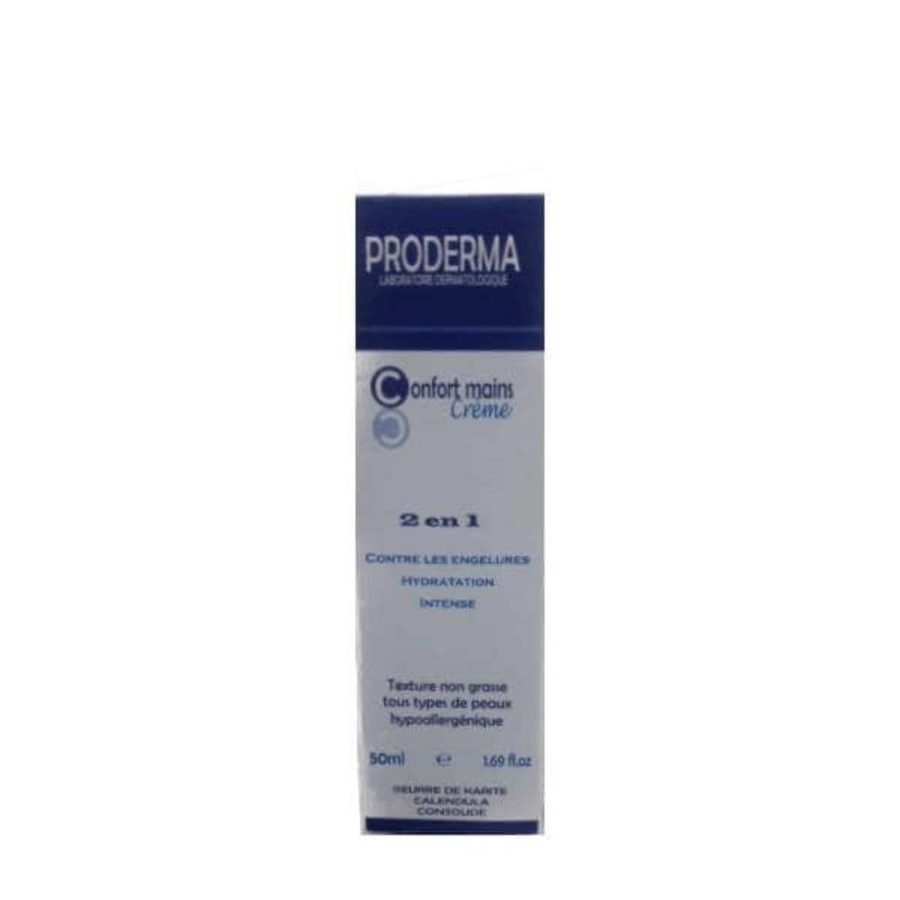 PRODERMA Confort Crème Mains 50 ml est un soin quotidien destiné à hydrater, nourrir et apaiser les mains, même les plus sèches et irritées.