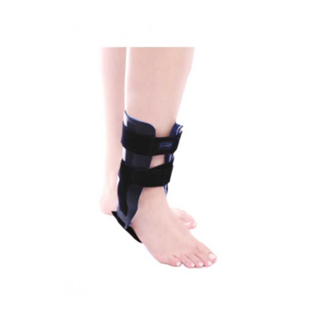 Positionner l’attelle autour de la cheville et ajuster les sangles velcro pour un maintien optimal. Pour un soulagement accru, utiliser en complément de séances de froid en cas d’œdème.