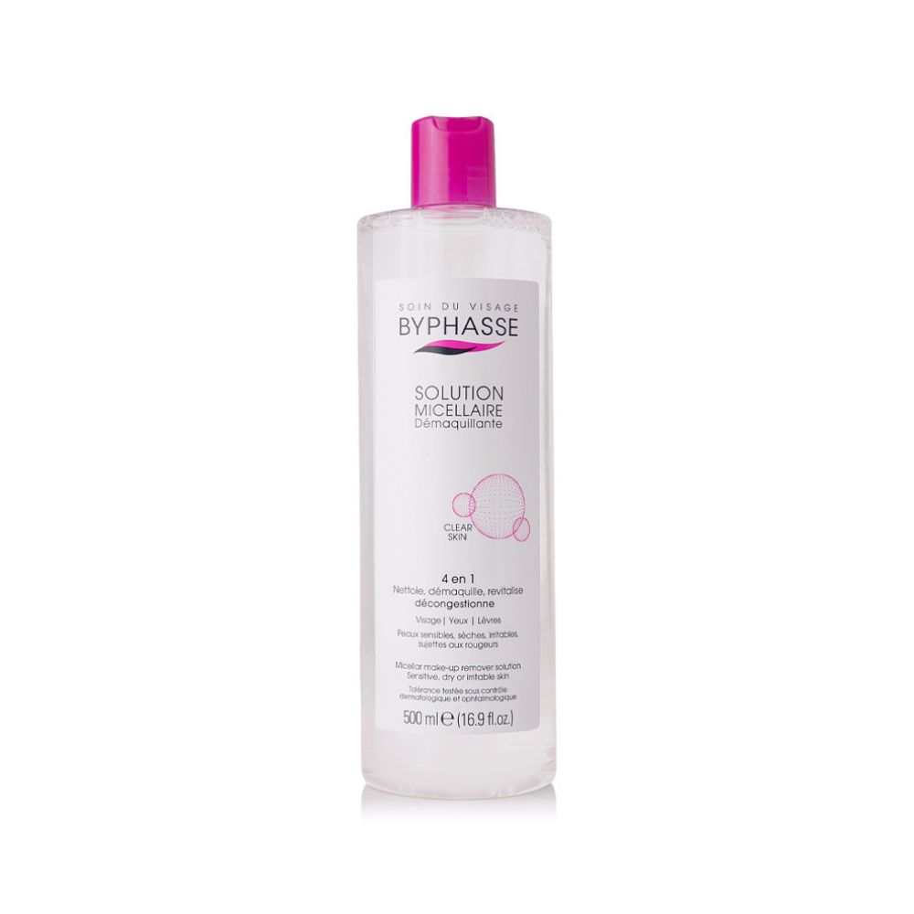 La solution micellaire BYPHASSE dernière génération offre un démaquillage et un nettoyage en douceur du visage, des yeux et des lèvres grâce à ses micelles, petites particules de tensioactifs. Sa formule évite l’effet gras et le dessèchement de la peau pour un confort optimal.