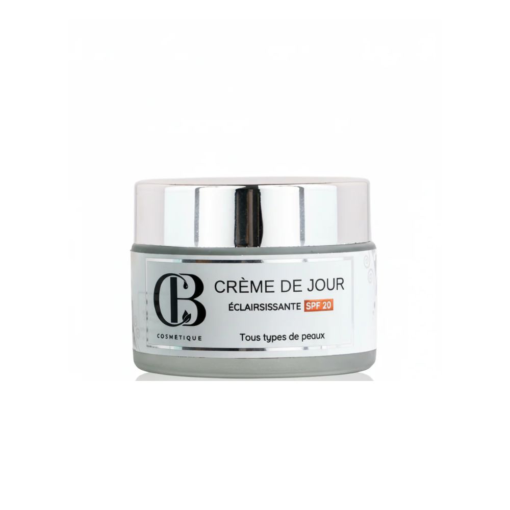La Crème de Jour Éclaircissante offre un teint lumineux et uniforme tout en protégeant la peau des rayons UV. Sa formule enrichie en dioxyde de titane, oxyde de zinc et extraits naturels illumine le teint, réduit les taches pigmentaires et hydrate intensément, pour une peau radieuse et éclatante.