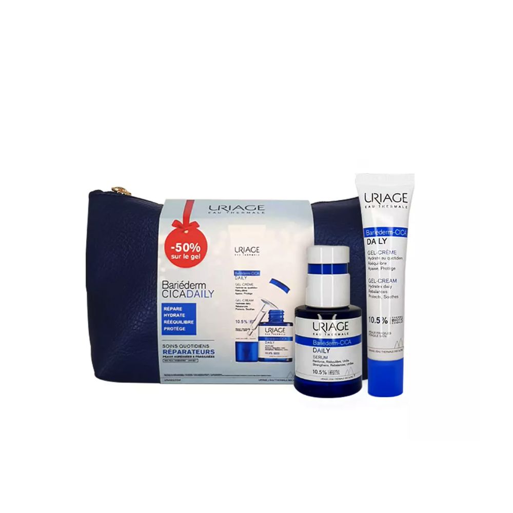 Le coffret Uriage Bariederm Cica-Daily offre une routine complète pour réparer, apaiser et protéger les peaux sensibles ou fragilisées. Il contient un sérum concentré, un gel-crème hydratant et une trousse gratuite pour une application pratique au quotidien.